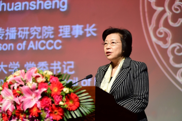 黄会林教授致辞令颁奖典礼达到最高潮。黄会林教授认为,中国文化国际传播在数量和质量上都不足,罗多弼和韩美林为中国文化国际传播付出了毕生精力,这种精神非常可贵。她表示“会林文化奖”既是一份新的责任,也是中国文化国际传播研究院的新起点。希望这个奖项永久保持学术品格、国际视野和民族特色,为世界文化的共同进步做出应有的贡献。“会林文化奖”将每年举办一次,为推动中国文化国际传播积极努力。