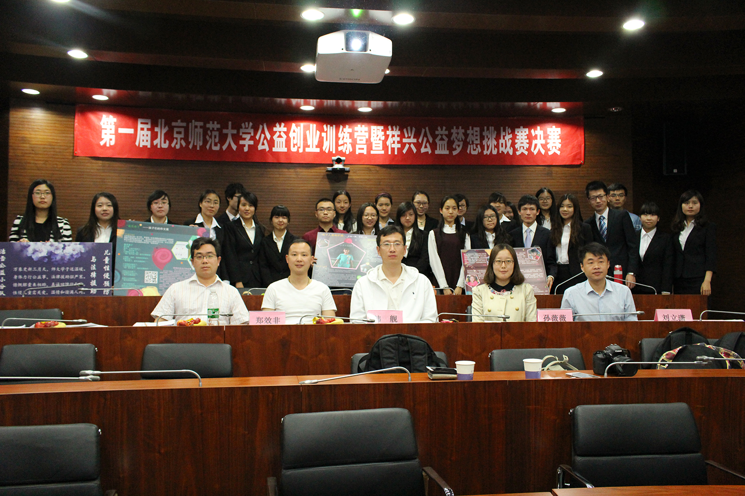 4月25日,第一届北京师范大学公益创业训练营暨祥兴公益梦想挑战赛决赛在京师学堂举办。本活动由北京师范大学教育基金会发起、祥兴集团鼎力支持,共青团北京师范大学委员会协助举办,意在通过大学生团队公益营销的方式,为提出的公益项目筹措资金,并通过团队的实践努力来实现公益梦想。