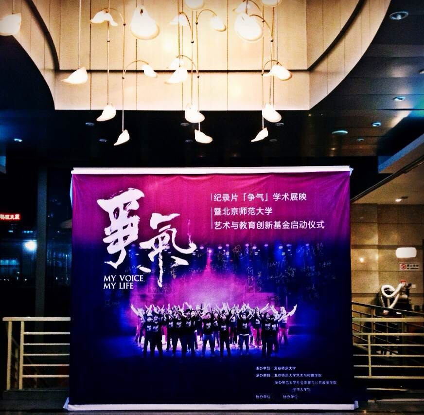 2014年12月20日下午,纪录片《争气》学术展映暨北京师范大学艺术与教育创新基金启动仪式在北京师范大学北国剧场举行。奥斯卡金像奖纪录片得主杨紫烨,纪录片监制何静莹女士,香港大学发展总监徐咏璇女士出席仪式。我校副校长陈光巨教授,艺术与传媒学院、社会发展与公共政策学院、教育学部、国内合作办、港澳台办、教育基金会相关负责人及200余名中小学校长、教师代表、公益机构嘉宾出席并观看了此部影片。