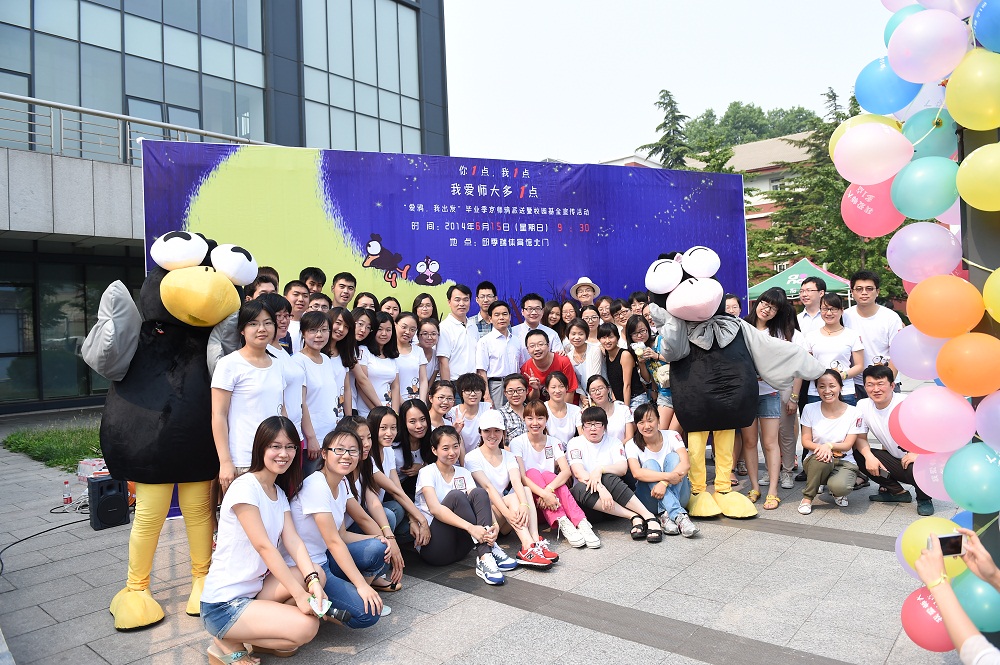 启动仪式后,京师鸦派送活动正式开始。毕业生纷纷前来领取自己的毕业礼物,同时也为“你1点,我1点,我爱师大多一点”校园基金捐款,奉献爱心。