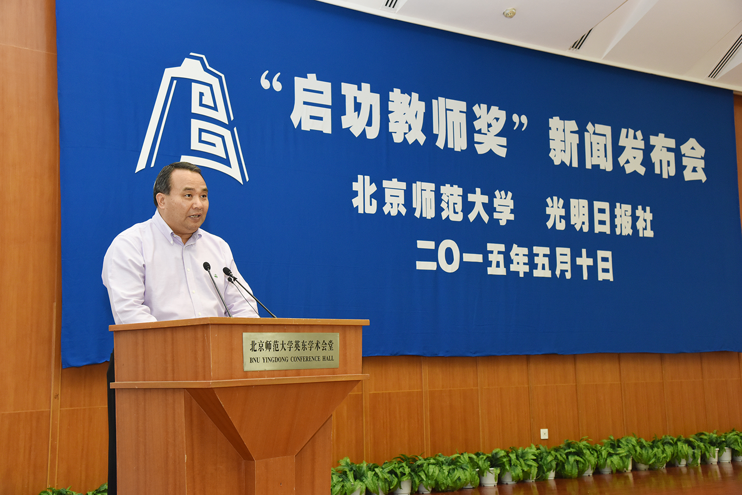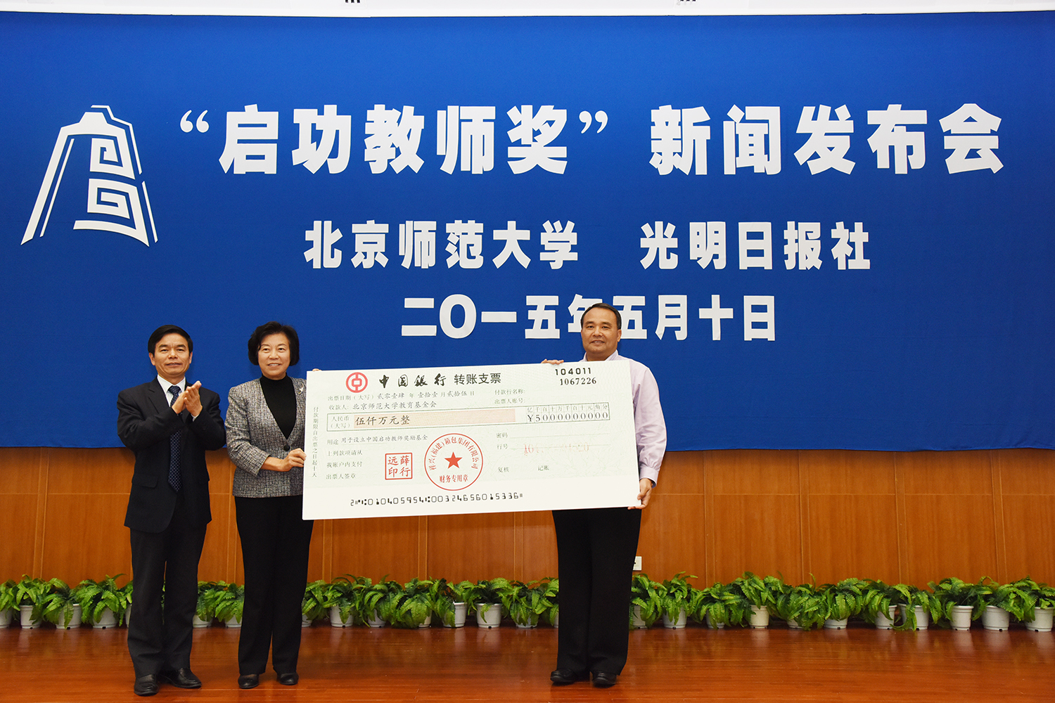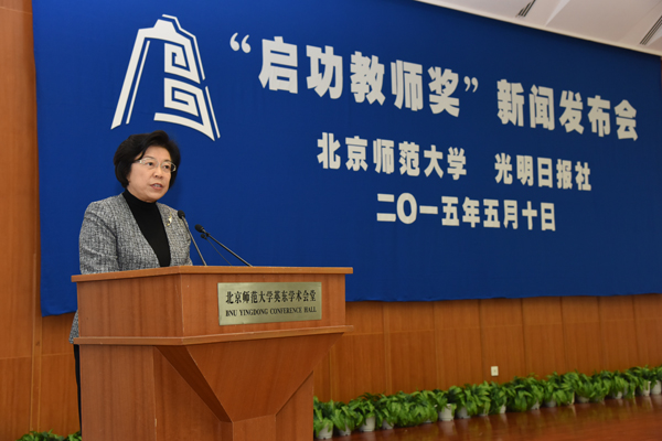 2015年5月10日,首届“启功教师奖”新闻发布会暨“启功教师奖”捐赠仪式在英东学术会堂隆重举行。国家教育咨询委员会委员,联合国教科文组织协会世界联合会副主席陶西平,祥兴集团总裁薛行远、祥兴集团副总裁薛坤明,教育部教师工作司副司长殷长春,光明日报总编辑何东平、副总编辑刘伟等嘉宾应邀出席,我校党委书记刘川生,校长董奇,党委副书记刘利出席发布会。发布会由董奇校长主持。