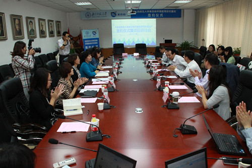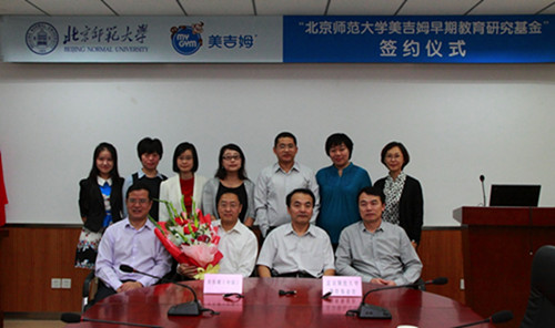 近日,“北京师范大学-美吉姆早期教育研究基金”于北京正式创建成立。该基金由北京师范大学和美吉姆国际儿童教育中心共同合作成立,旨在推动中国早期教育研究的发展。双方于2014年9月17日于北京师范大学举办了签约仪式,北京师范大学副校长、中国民主同盟中央委员会副主席葛剑平和美吉姆(中国)首席执行官刘俊君等双方领导出席了活动,双方并于签约仪式后进行了基金研究方向的深入研讨。