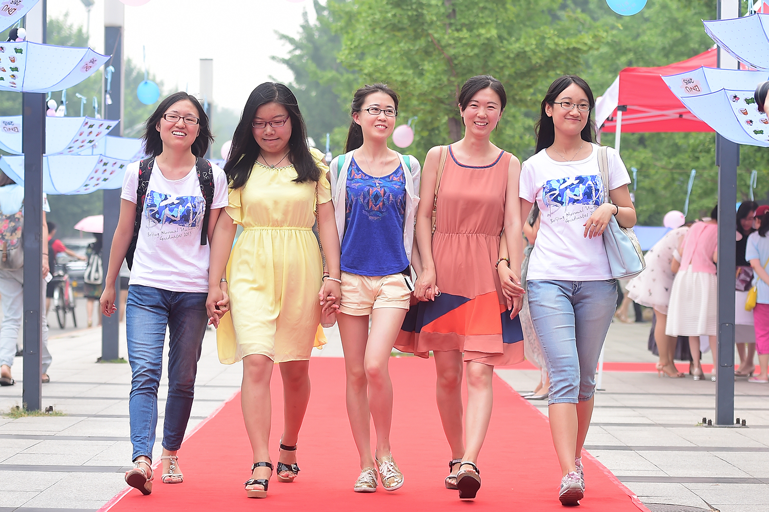 随后张吾龙秘书长与来自11个院系的14名教师代表向毕业生赠送了凝聚着学校对毕业生深深祝福的天使伞。启动仪式后,2015年毕业季天使伞派发暨“最美好的你”毕业生红毯仪式正式开始。教师代表和毕业生代表以及来自各个院系的莘莘学子们纷纷踏上红毯,成为最闪耀的明星,在师大留下他们最美丽的笑颜与最靓丽的身姿。