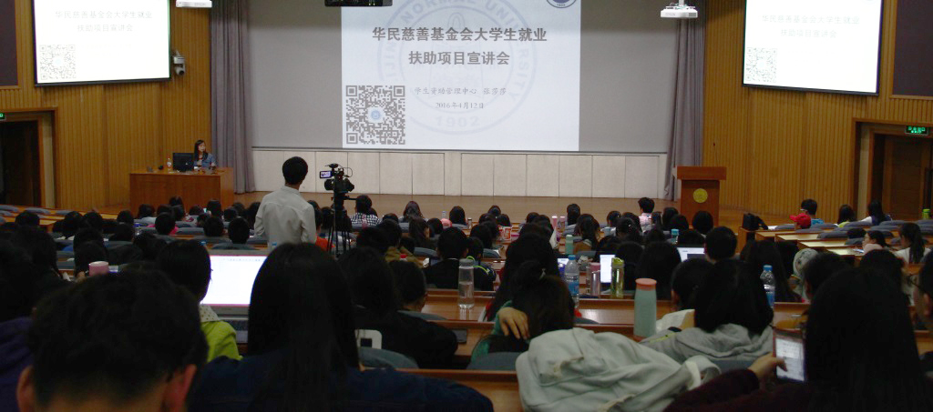 为帮扶我校家庭经济困难学生顺利就业,华民慈善基金会今年继续在我校设立了大学生就业扶助项目(简称HEAP)。为了让同学们更好地了解该项目并确保后续项目实施申报工作的有序进行,同时应华民慈善基金会的要求,北京师范大学华民慈善基金会大学生就业扶助项目宣讲会于4月14日下午三点半在敬文讲堂成功举办,宣讲会由我校学生资助管理中心老师主讲,吸引了约300名大三学生参加。